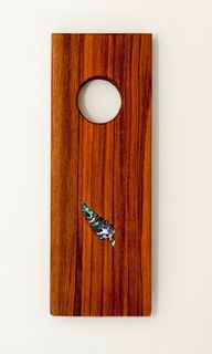 The Square Wine Bottle Holder with Paua inlay uses the weight of the wine bottle for balance.